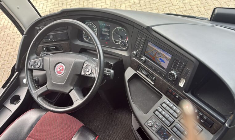 50+1+1, Schlafsitze, Seitlichverstellbar, Armlehnen mit gurte an allen Sitzen, Klimaanlage, Toilette, Retarder, Tempomat, ABS, ASR, ESP, BAS, ENR, Kühlschrnak, Leselampen, Düsenbelüftung, Doppelverglasung, Furasten, Klapptischen, Gepäckablege, Gepäcknetz, Vorhänge, Fahrerrollos, Hebe-Senk-Anlage, Skikofferhaltrung, Luftferdrung, Servolenkung, Zentralverregelung, Digital-Tacho, Fahrerschlafkabine mit Funk, Mikrofon, DVD-Player, Radio/Casetten, XENON-Licht, Nebelscheinwerfer, Hinterachse Mercedes-Benz RO 440, Motor Mercedes-Benz OM 470, 315 KW – 428 PS 2100NM) Abgasemmission Stufe Euro.6 Norm Grünplakette, 100 Km/h, Ersterhand, Touristikbus, Nichtraucherbus, Original KM